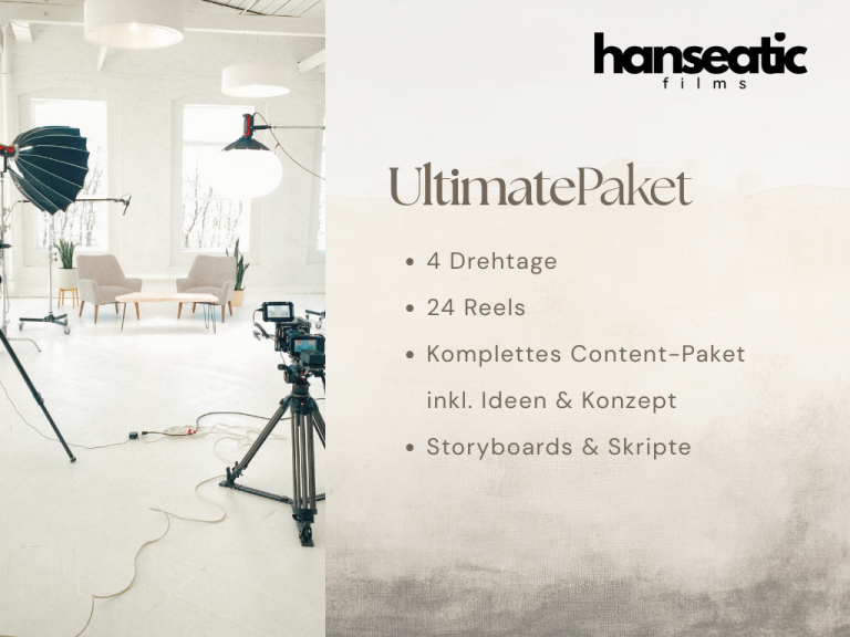 Unsere Pakete enthalten Drehtage vor Ort und die Produktion von Reels, ideal für alle, die selbst posten möchten. Auf Wunsch können auch hochwertige Fotos hinzugebucht werden.